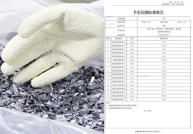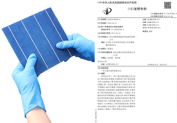 手套經(jīng)過特殊工藝處理,通過驗(yàn)證將手套放置氮?dú)夤癞?dāng)中80H,手套接觸產(chǎn)品無任何氧化情況,經(jīng)權(quán)威機(jī)構(gòu)檢測氯元素及硫元素完全符合接觸電池片標(biāo)準(zhǔn),且不會(huì)在電池片上面留下任何指印。